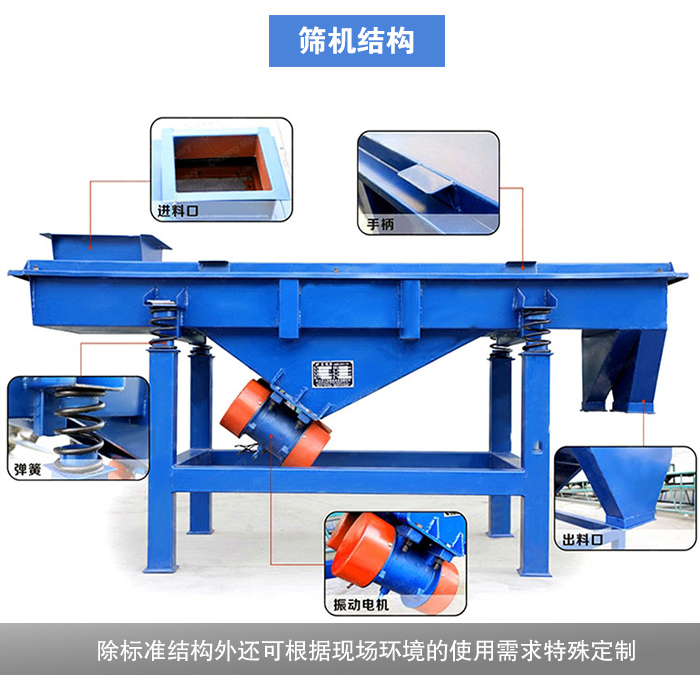 松香分級直線振動篩除標準結(jié)構(gòu)外還可根據(jù)現(xiàn)場環(huán)境的使用需求特殊定制(如底座加高、進料口加緣、出料口加閥門等等),隨之價格也會有對應(yīng)的提升,每個型號之間相差600-1500元不等。