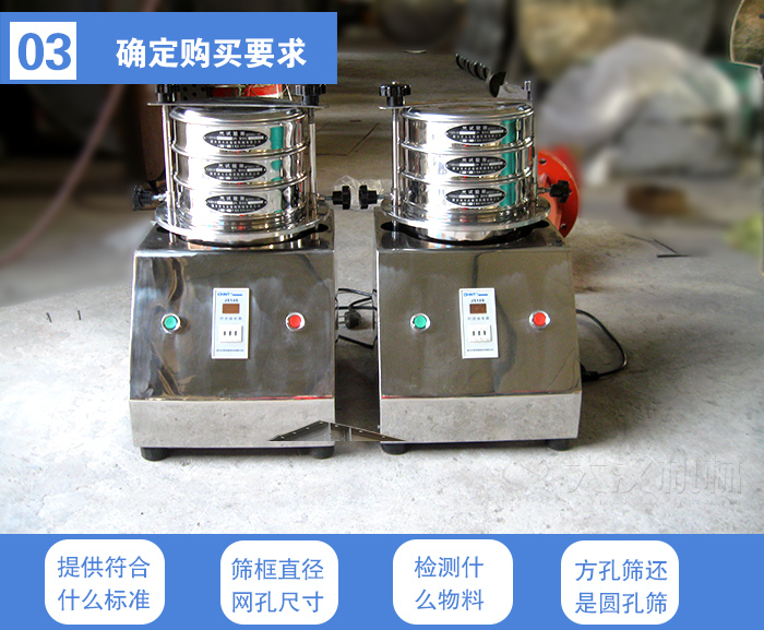 2、提供篩框直徑、網孔尺寸。(例:直徑200mm、網孔0.05mm)