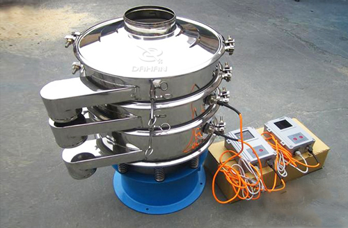 3、如果用戶生產的處理量較大,選用的設備較大如1.5米的機器,則需要多加裝一臺超聲波電源系統.設備過大,則激振力(即換能器所產生的機械波)在篩面的傳遞不夠均勻,激振力在篩面的傳送遞減,物料的運動(拋起高度)不夠,那么就會出現堵網現象。加裝一臺超聲波電源系統,兩個超聲波換能器對稱安裝,就可以使激振力均勻的傳遞給篩面,在通過篩面是物料在這個作用力下不斷拋起,同時在旋振篩振動電機的偏心塊所產生的激振力的作用下做三次元運動,即物料在篩面不斷的旋轉運動.在兩種作用力下提高透網率,一般,超聲波振動篩的振動頻率為30000次/秒.